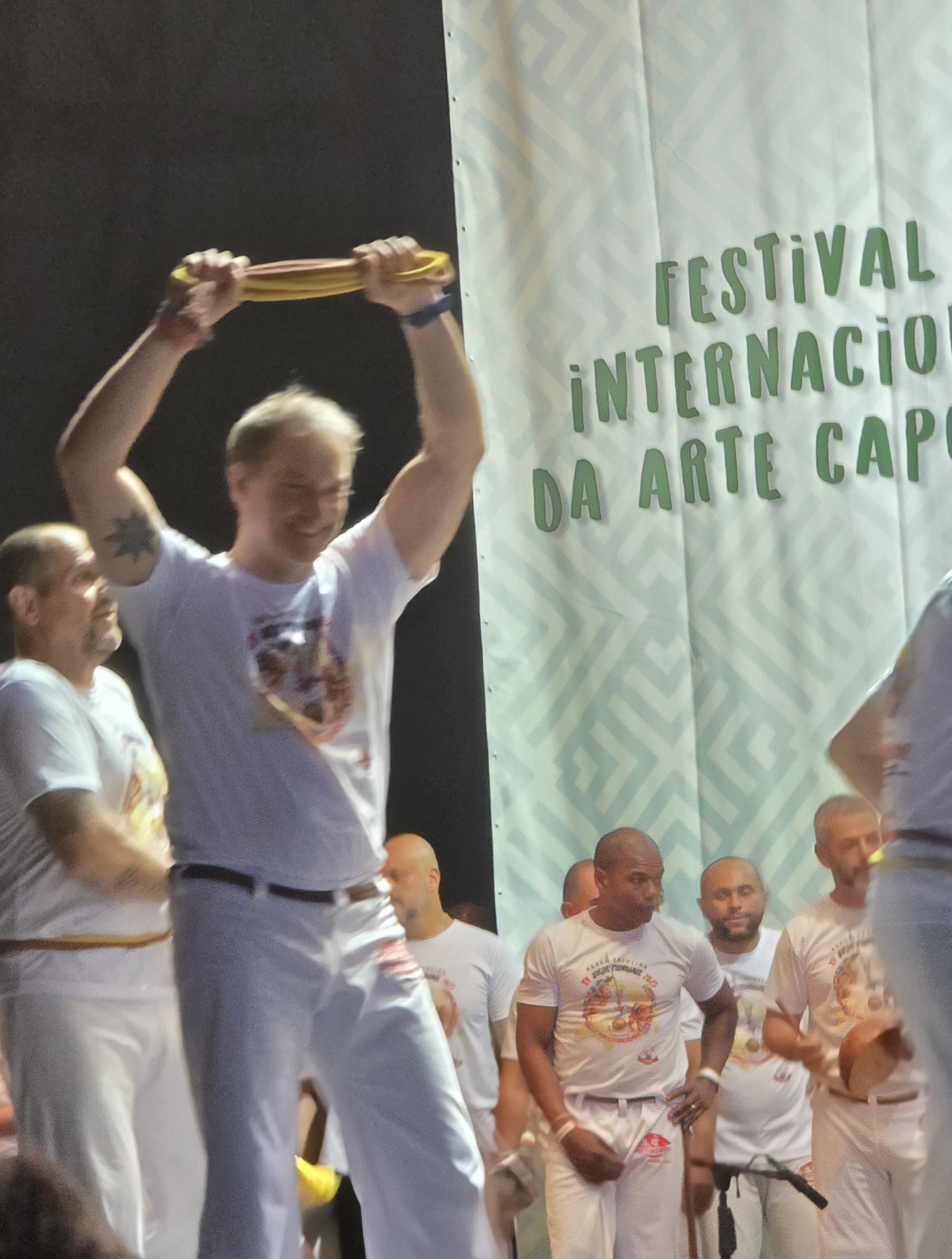 Am 23 August 2025 bekam er auf den Jogos Mundiais in Rio de Janeiro von Mestre Camisa die lila-gelbe Kordel und damit den Titel "Instrutor Baobá" verliehen.